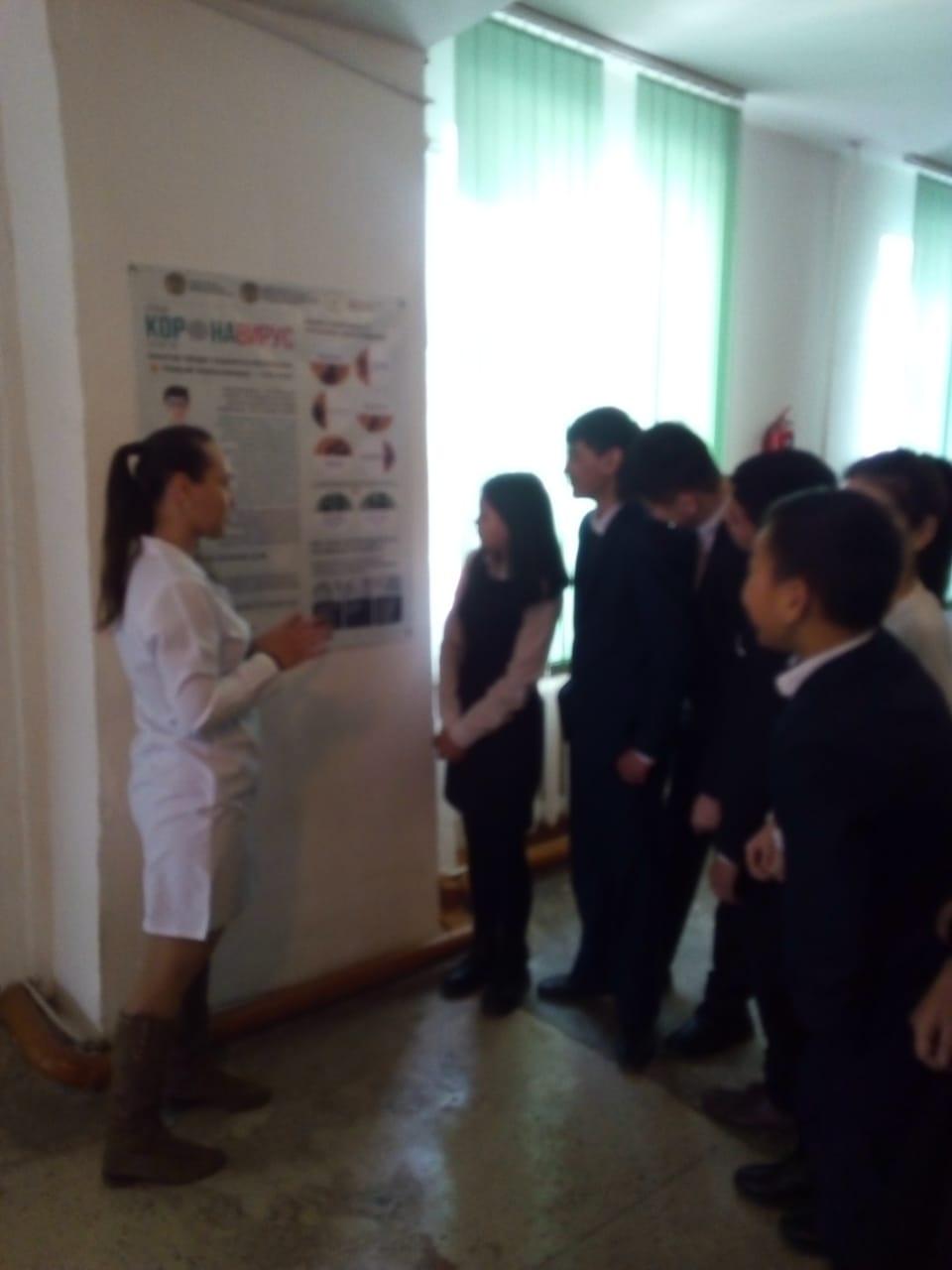13 March 2020 0 1 2 3 4 5 Коронавирус 13 наурыз күні Аудандық аурухананың медбикесі Ж.Сыдықов атындағы орта мектебінің оқушыларымен кездесіп Коронавирус инфекциясы туралы айтып, одан қалай қорғану керек екендігін түсіндірді.