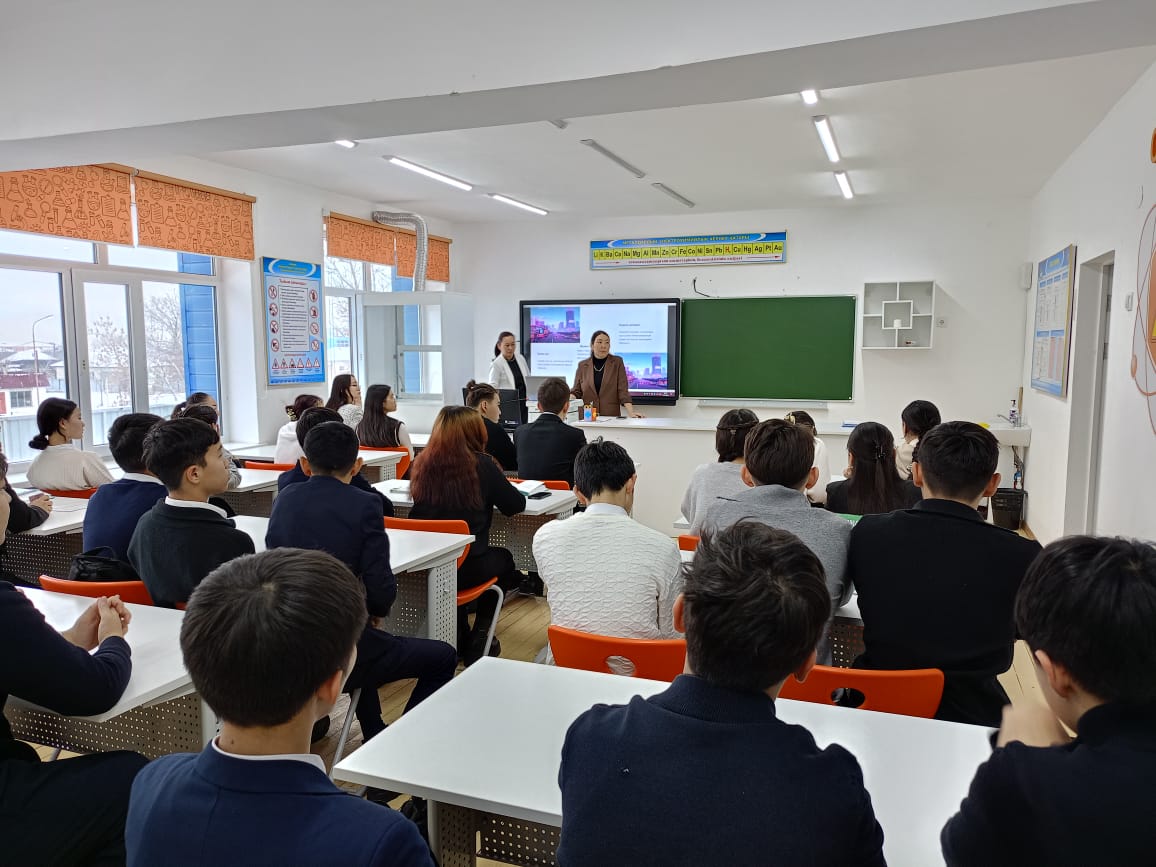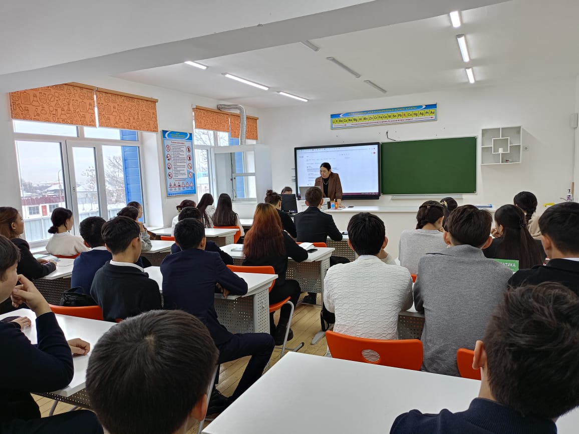 31.01.2025 ж МИФ апталығының жоспарына сәйкес информатика пәнінің мұғалімдері А.Т.Ермухамбетова мен Г.Ж.Кулынбаевалар 9-11-сынып оқушыларымен "Цифрлық сауаттылық-заман талабы" тақырыбында семинар өткізіп, интернет қауіптіліктің алдын алу мен сауатты пайдалану жолдарын таныстырып өтті