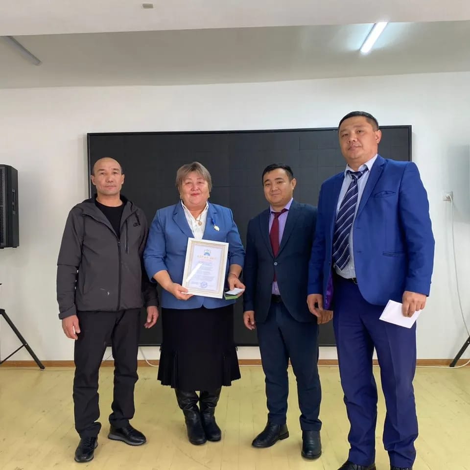 "Алты алаштың игі жақсысы бас қосса, төрдегі орын-ұстаздікі"-деп Мағжан Жұмабаев атамыз айтқандай, бүгін мектебімізде талай жыл еңбек етіп, сан шәкіртті білім нәрімен сусындатып, өздерінің іс-тәжірибелерімен жас буынға үлгі бола білген ұстаздарымыз бастауыш сынып мұғалімі Г.К. Муйдинова мен география пәнінің мұғалімі Ұ.Д.Аланбаевалардың зейнеткерлік жасқа толу құрметіне орай, білім беру жолындағы сан жылғы еңбектерінің жемісі ретінде аудандық кәсіподақ ұйымының төрағасы А.Маралов мырза "Құрмет" төсбелгісімен марапаттады. Ұстаздарымызға қуаныштарына ортақ екенімізді білдіреміз! Білім беру жолындағы еңбектеріңіздің тек жақсылығын, жемісін көріп, мәртебелеріңіз асқақтай берсін!
