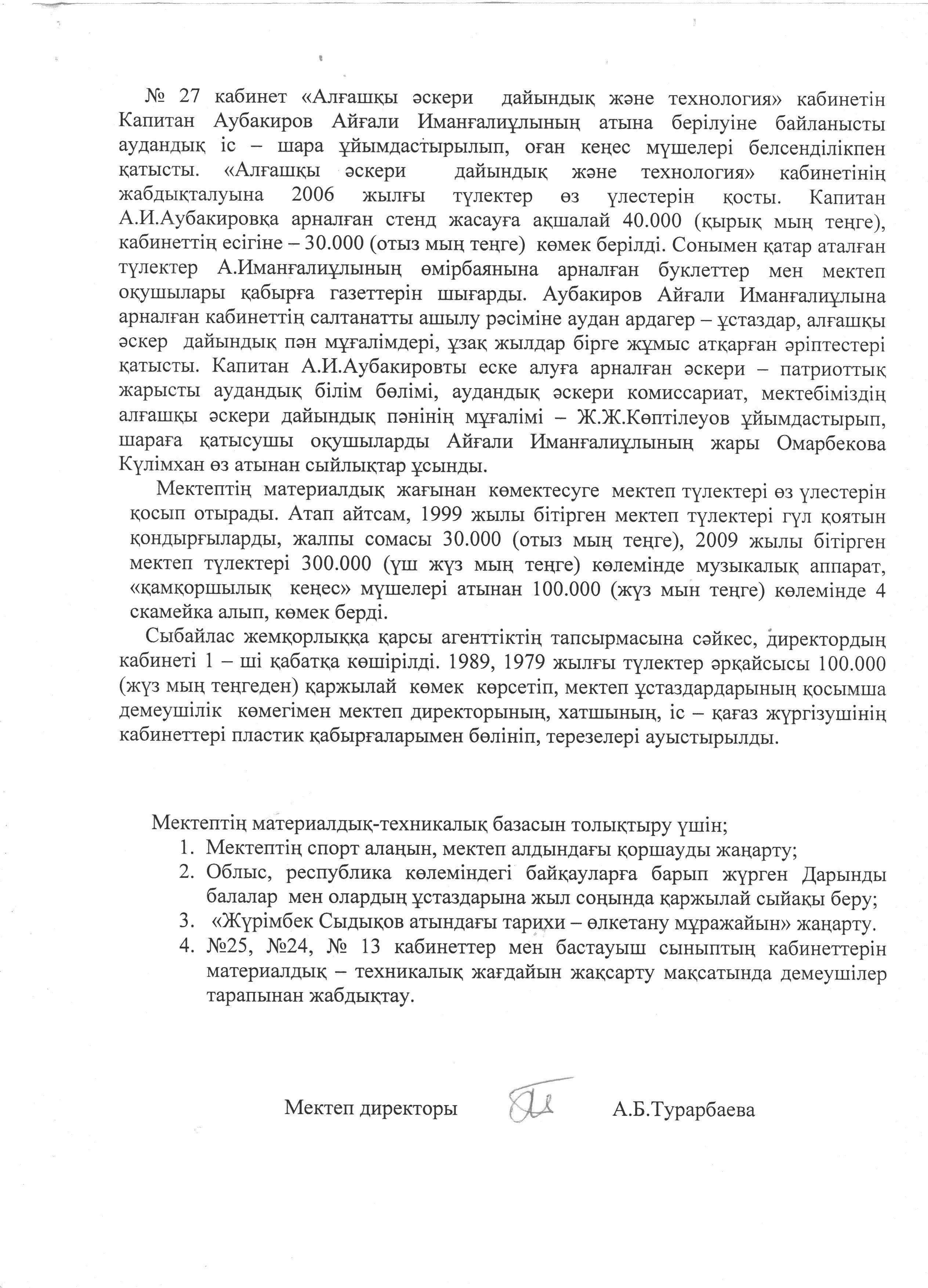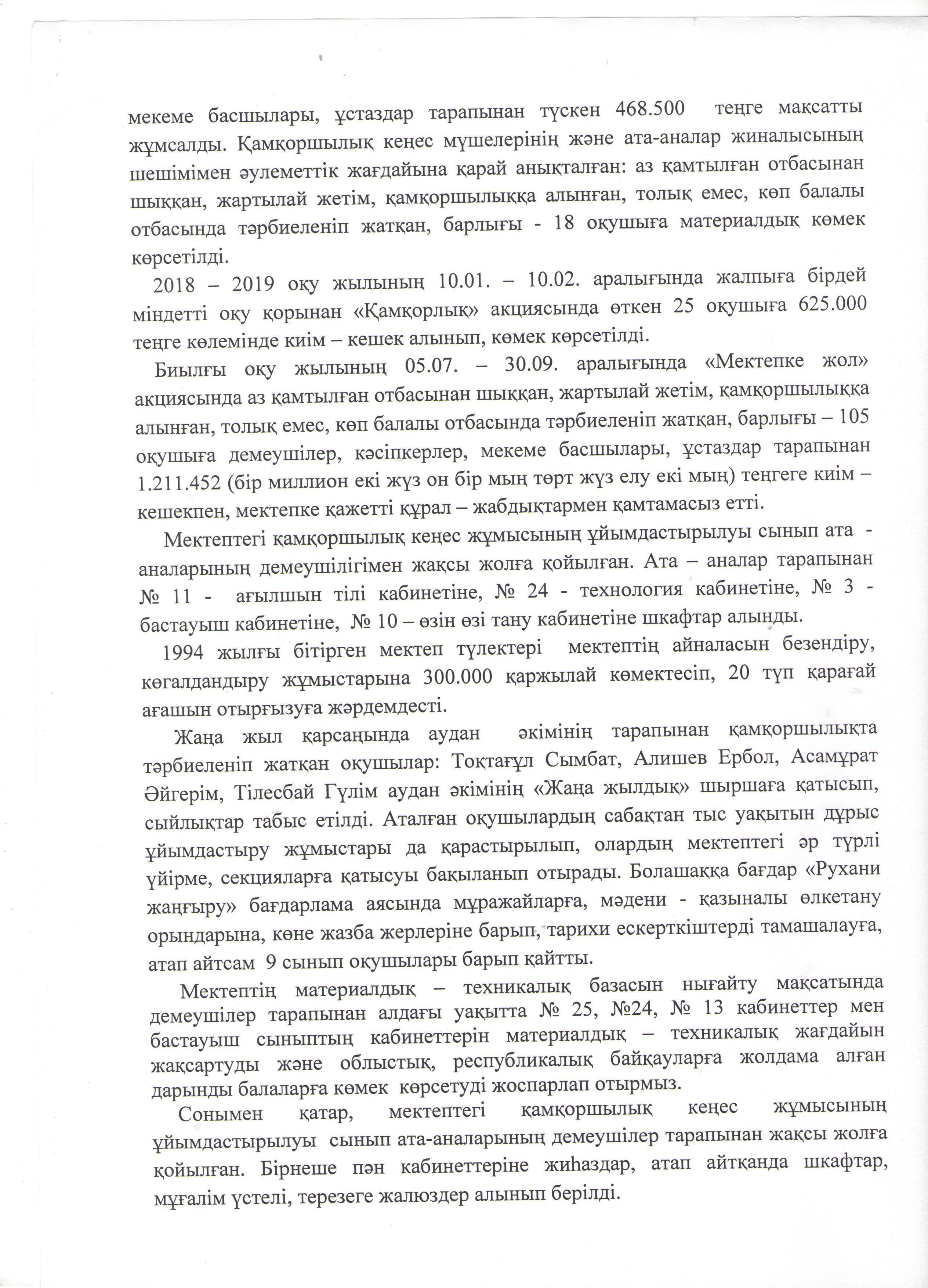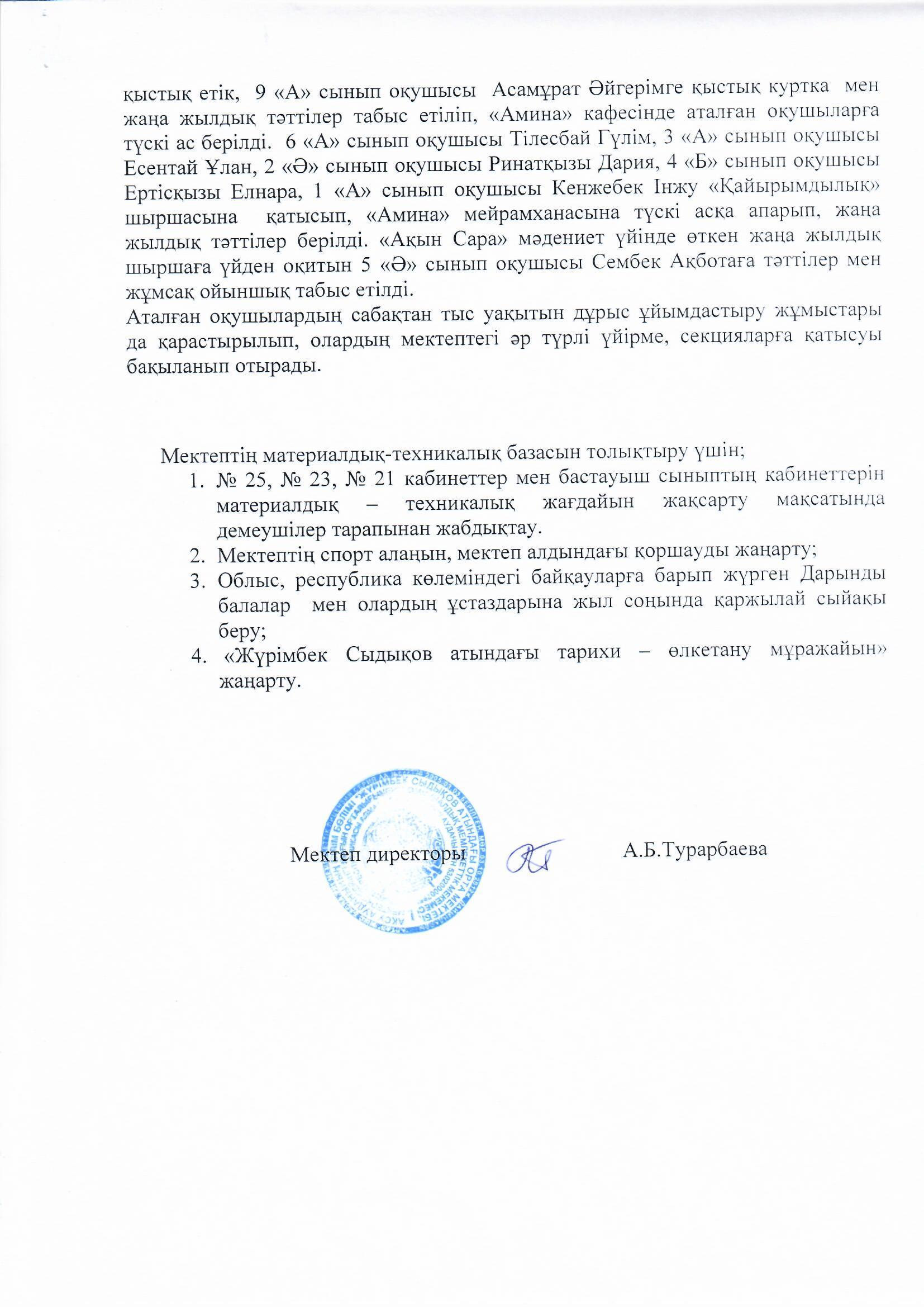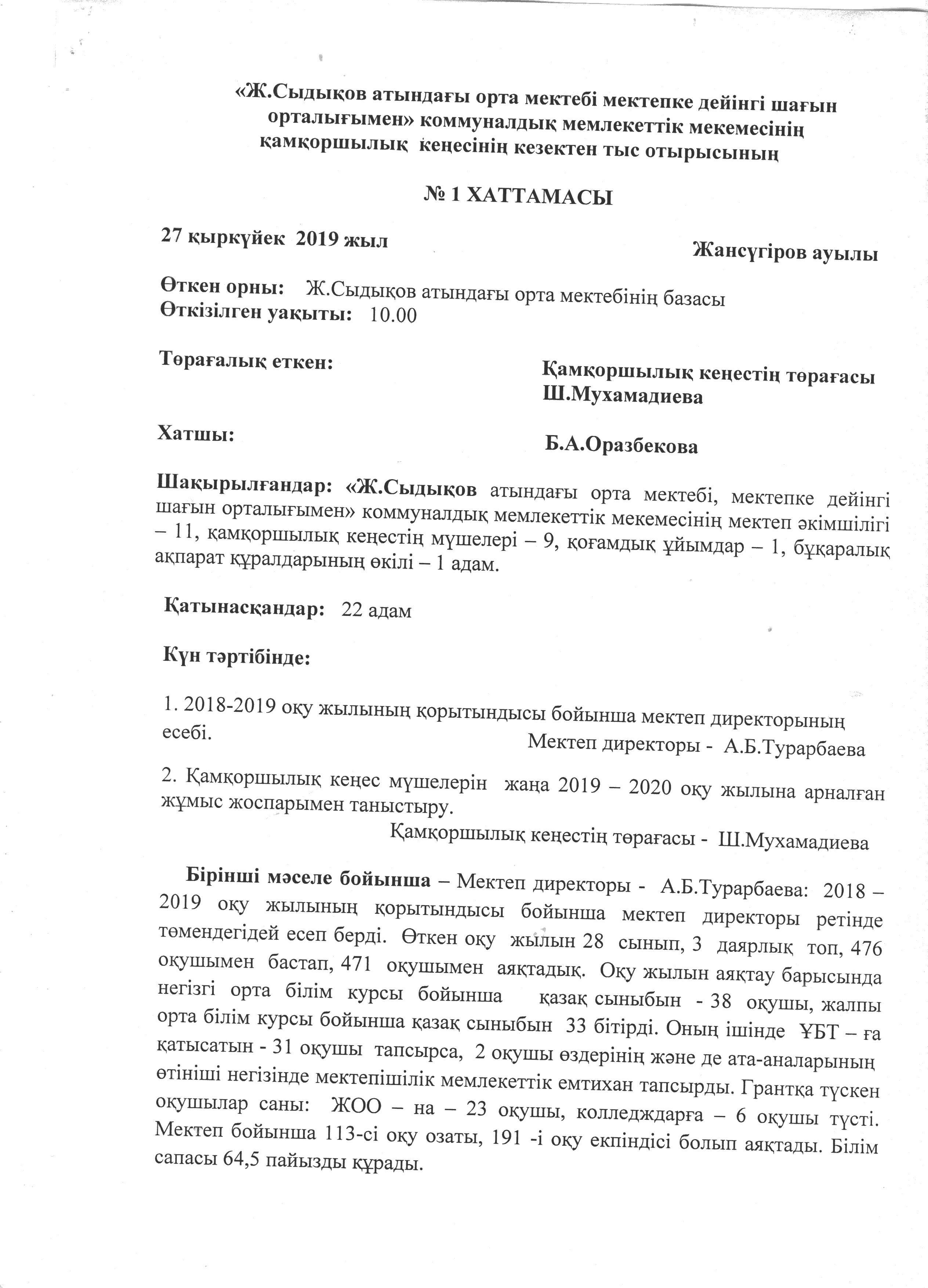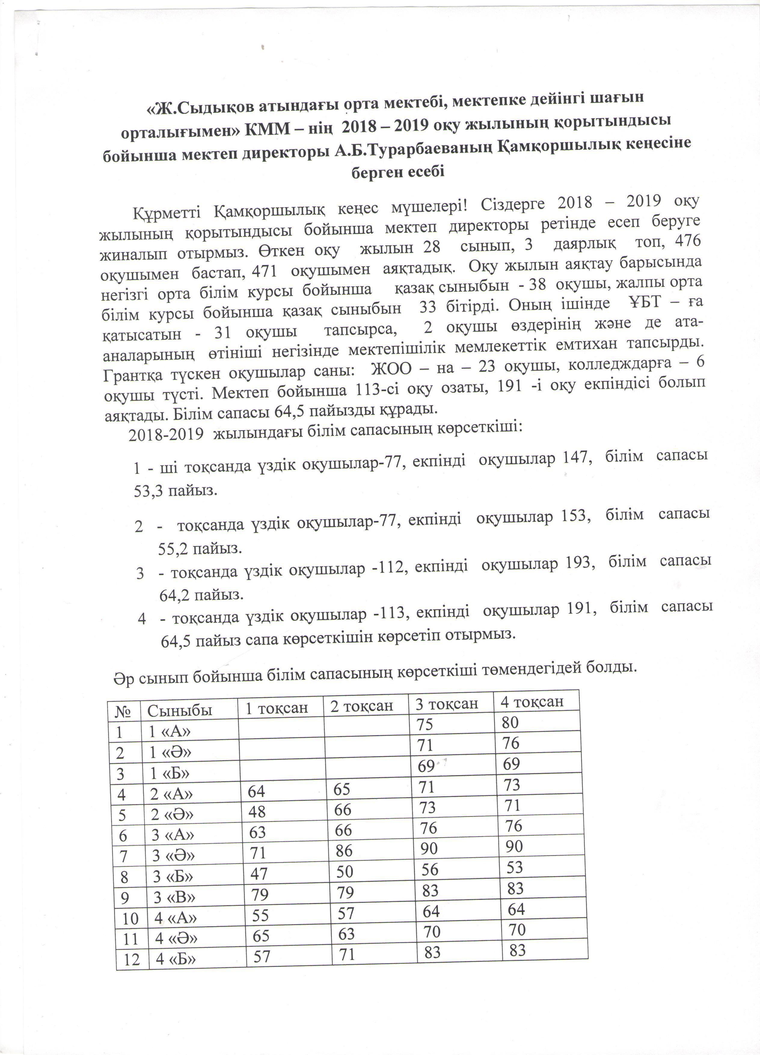"Жүрімбек Сыдықов атындағы орта мектебі, мектепке дейінгі шағын орталығымен" коммуналдық мемлекеттік мекемесінің 2019-2020 оқу жылының І-жарты жылдығы бойынша мектеп директоры А.Б.Турарбаеваның Қамқоршылық кеңесіне берген есебі https://sydykov-aksu.mektebi.kz/otkrytyj-organ/popechitelskij-sovet/152-zhrmbek-sydyov-atynday-orta-mekteb-mektepke-dejng-shayn-ortalyymen-kommunaldy-memlekettk-mekemesn-2019-2020-ou-zhylyny-zharty-zhyldyy-bojynsha-mektep-direktory-abturarbaevany-amorshyly-keesn.html https://sydykov-aksu.mektebi.kz/otkrytyj-organ/popechitelskij-sovet/152-zhrmbek-sydyov-atynday-orta-mekteb-mektepke-dejng-shayn-ortalyymen-kommunaldy-memlekettk-mekemesn-2019-2020-ou-zhylyny-zharty-zhyldyy-bojynsha-mektep-direktory-abturarbaevany-amorshyly-keesn.html