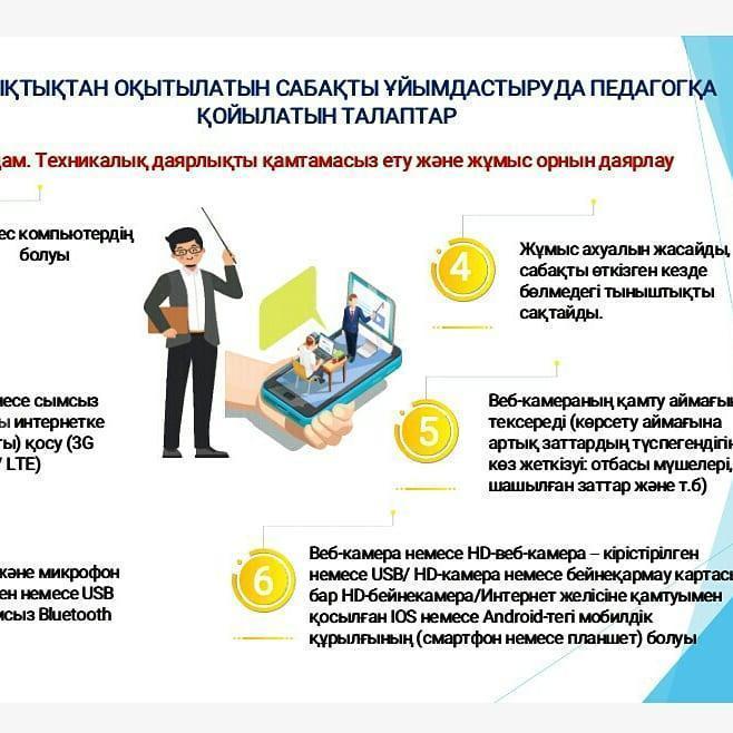 4) қашықтан оқыту: мұғалімнің жұмыс орны және ережелер;