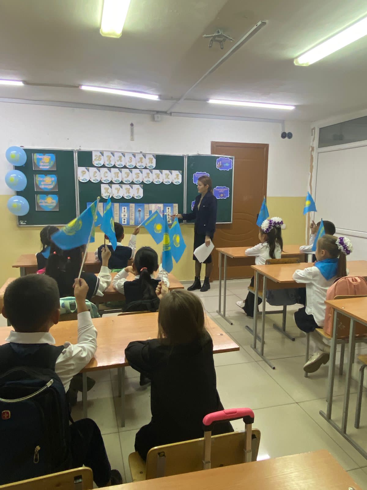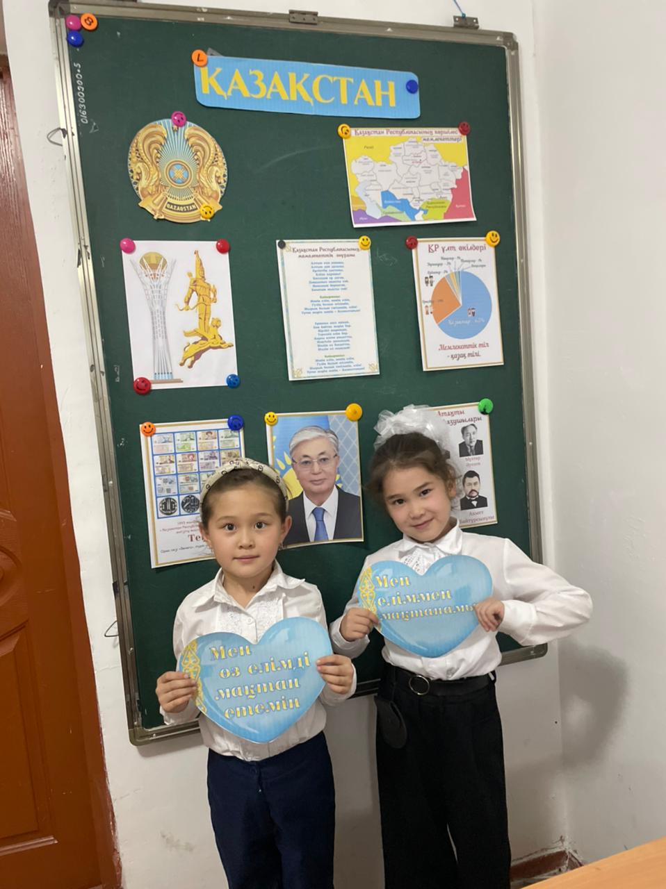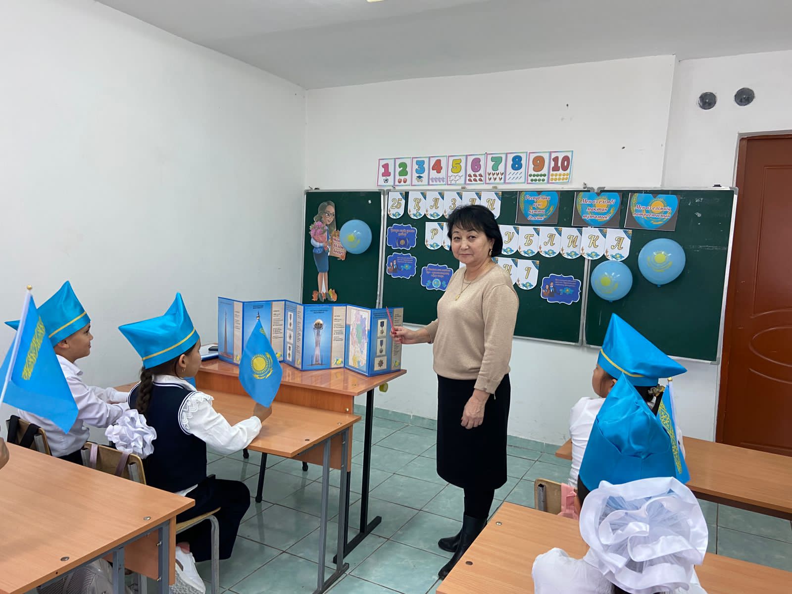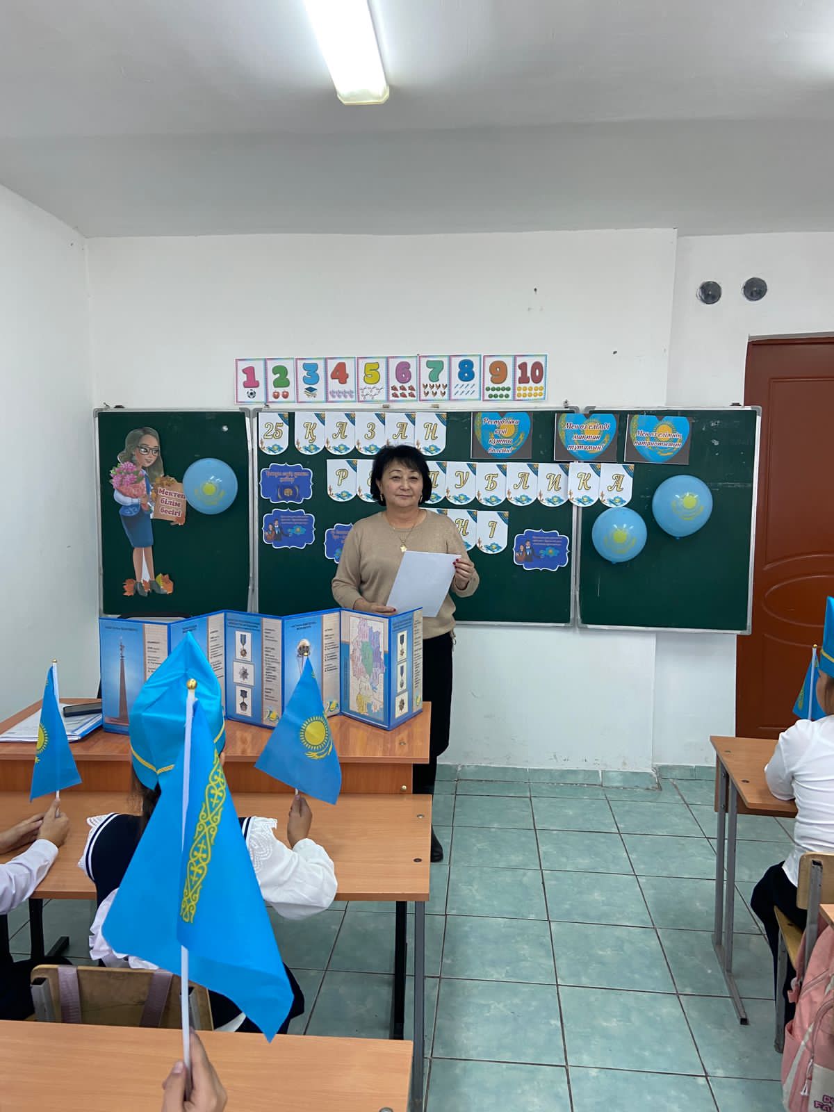Мақсаты: Қазақстан Республикасы туралы айтып өту, түсіндіру. Оқушыларды Отан сүйгіштікке, адамгершілікке, елінің  Туын, Елтаңбасын, Әнұранын қастерлеуге, халқының тарихын білуге тәрбиелеу.
