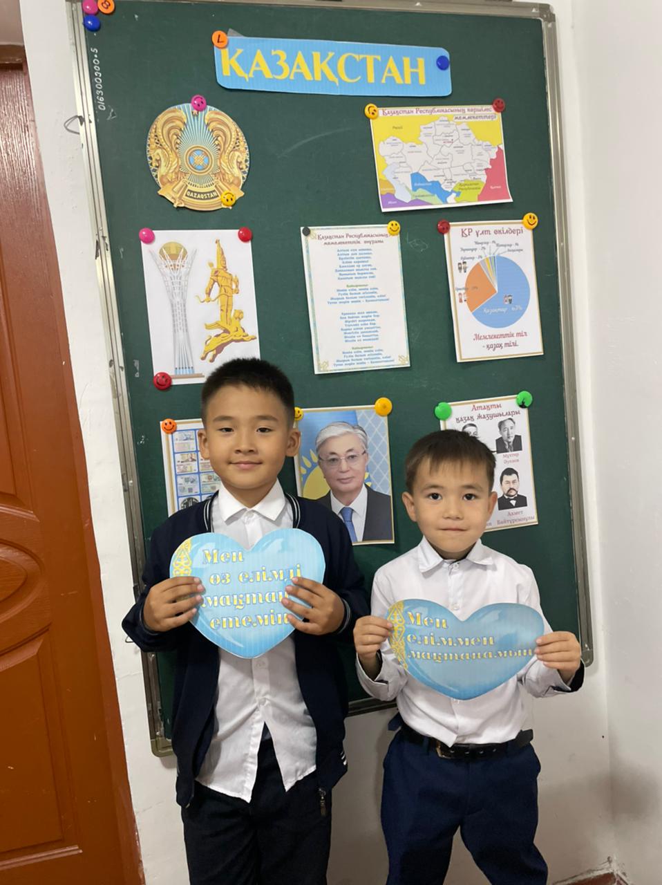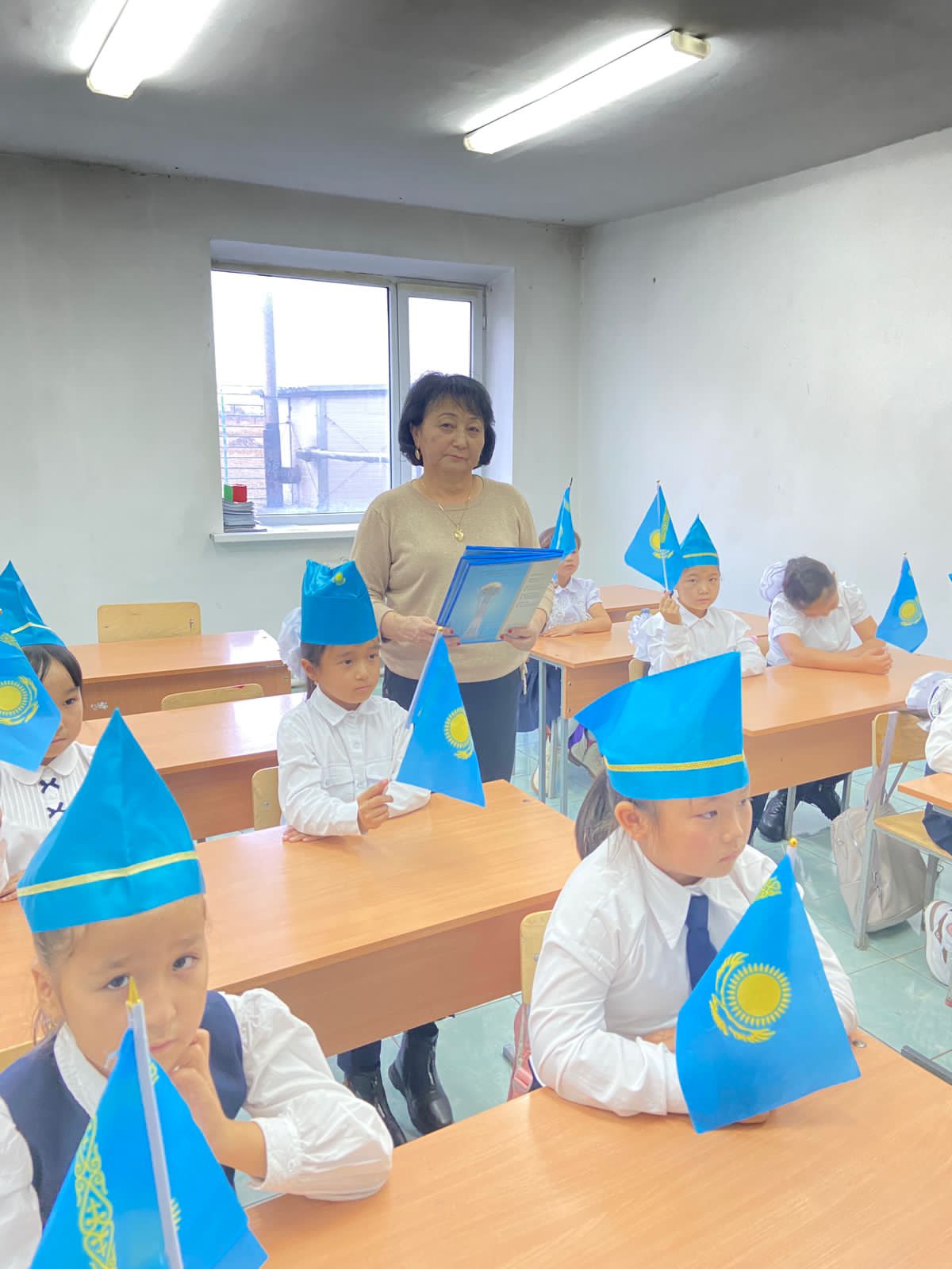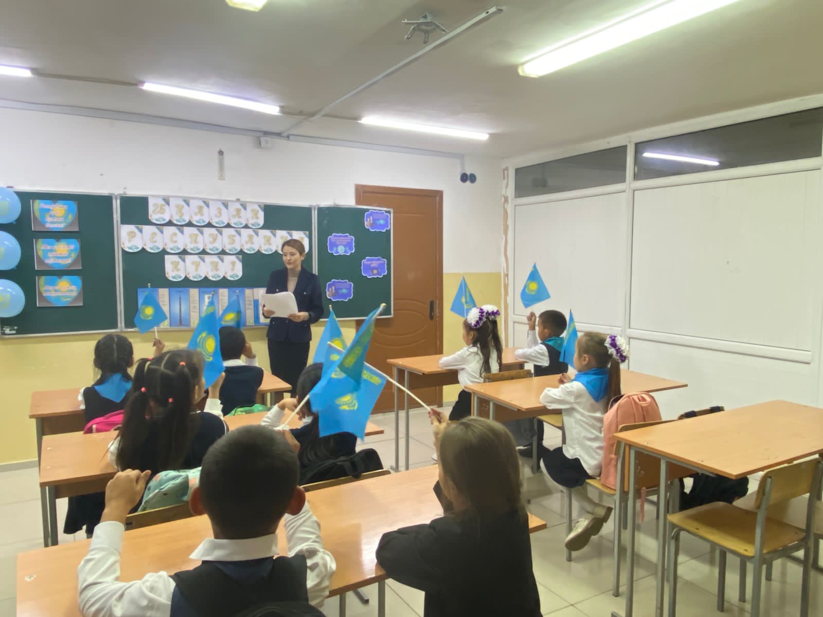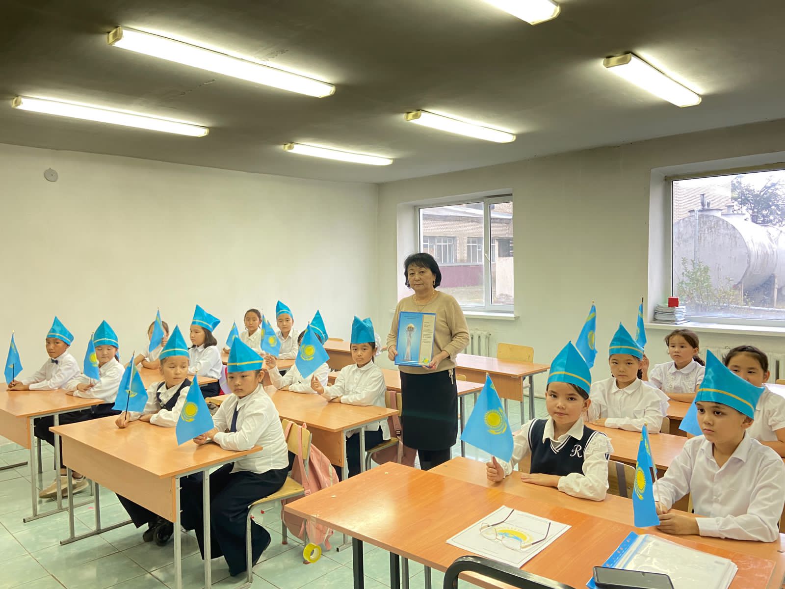 Мақсаты: Қазақстан Республикасы туралы айтып өту, түсіндіру. Оқушыларды Отан сүйгіштікке, адамгершілікке, елінің  Туын, Елтаңбасын, Әнұранын қастерлеуге, халқының тарихын білуге тәрбиелеу.