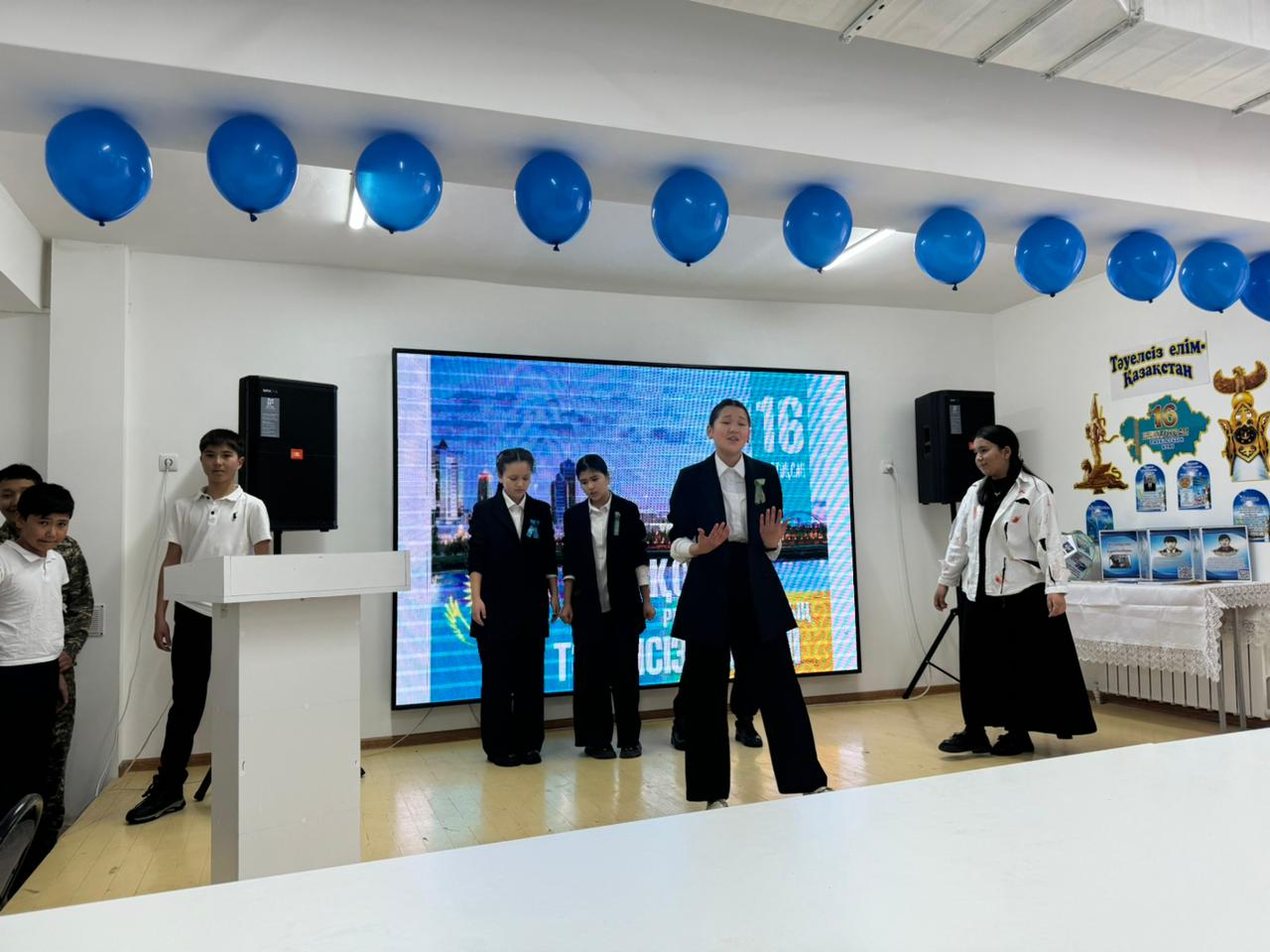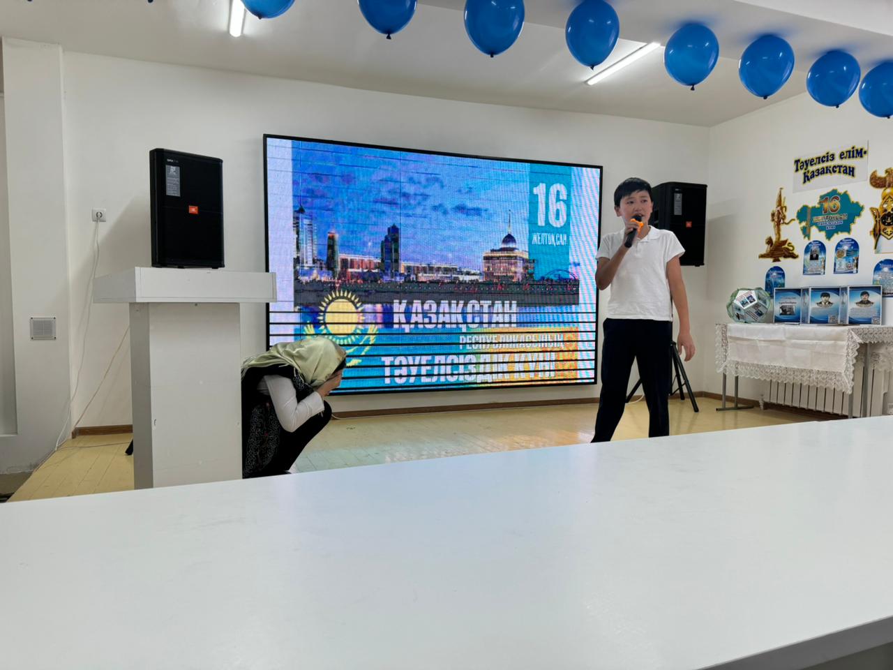 - Елін, жерін сүюге, Отанын қастерлеуге, шыншылдыққа тәрбиелеу мақсатында тәрбие ісінің меңгерушісі А.А.Қорғанбаева мен мектеп кітапханашылары Д.Жакипова, С.Халидолланың ұйымдастыруымен сыныптан тыс іс-шара ұйымдастырылып, іс-шара барысында оқушылар өлең шумақтарымен қатар сахналық қойылым қойып, егемендікке жету жолындағы қазақ жастарының ерлігін паш етті.