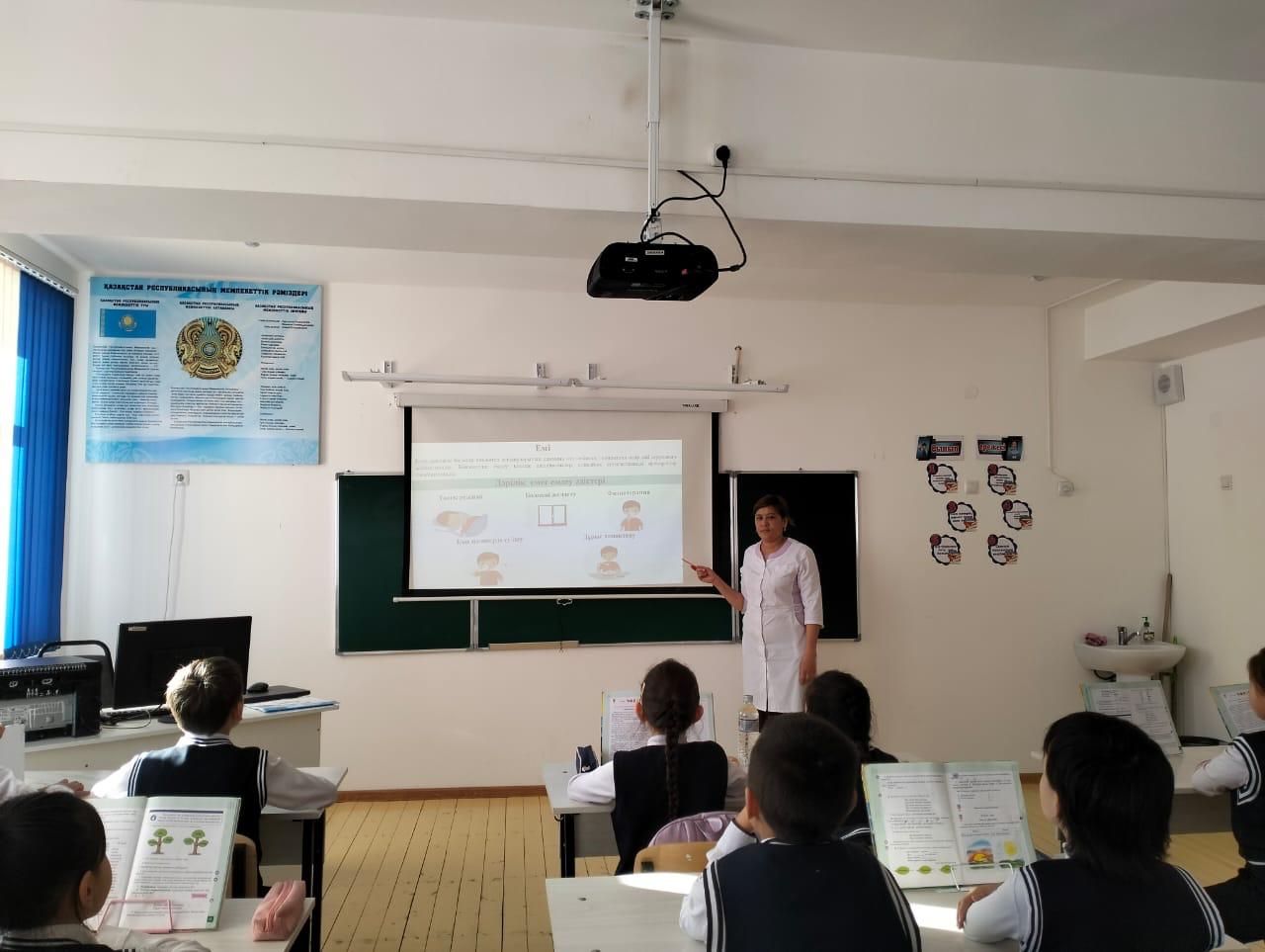 15 февраль 2024 0 1 2 3 4 5 Дені саудың -жаны сау “ Ж.Сыдықов атындағы орта мектебі, мектепке дейінгі шағын орталығымен” коммуналдық мемлекеттік мекемесінің медбикесі А.Абдикерова оқушыларға "Көкжөтел дегеніміз не? Ол несімен қауіпті?" деген тақырыпта баяндама жасап, түсіндірме жұмыстарын жүргізді.