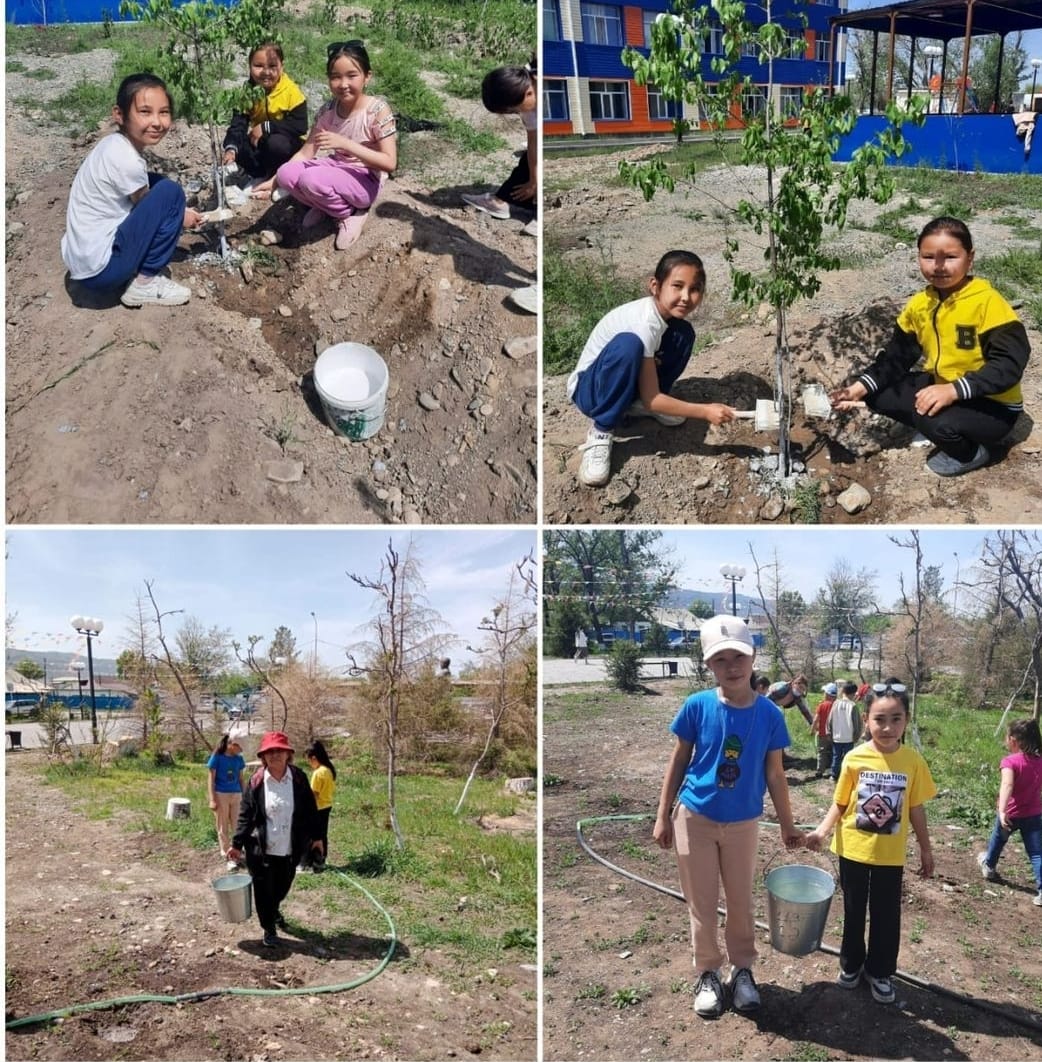 "Ж.Сыдықов атындағы орта мектебі, мектепке дейінгі шағын орталығымен"КММ 4"А" сынып оқушылары, сынып жетекшісі Сатыбалдина Г.С. "Таза өлке" Республикалық акцияға орай өз үлесін қосты. Табиғатымыз таза болсын, мектептің айналасы жайқалып тұрсын деп мектептің айналасына жеміс ағашын отырғызды.