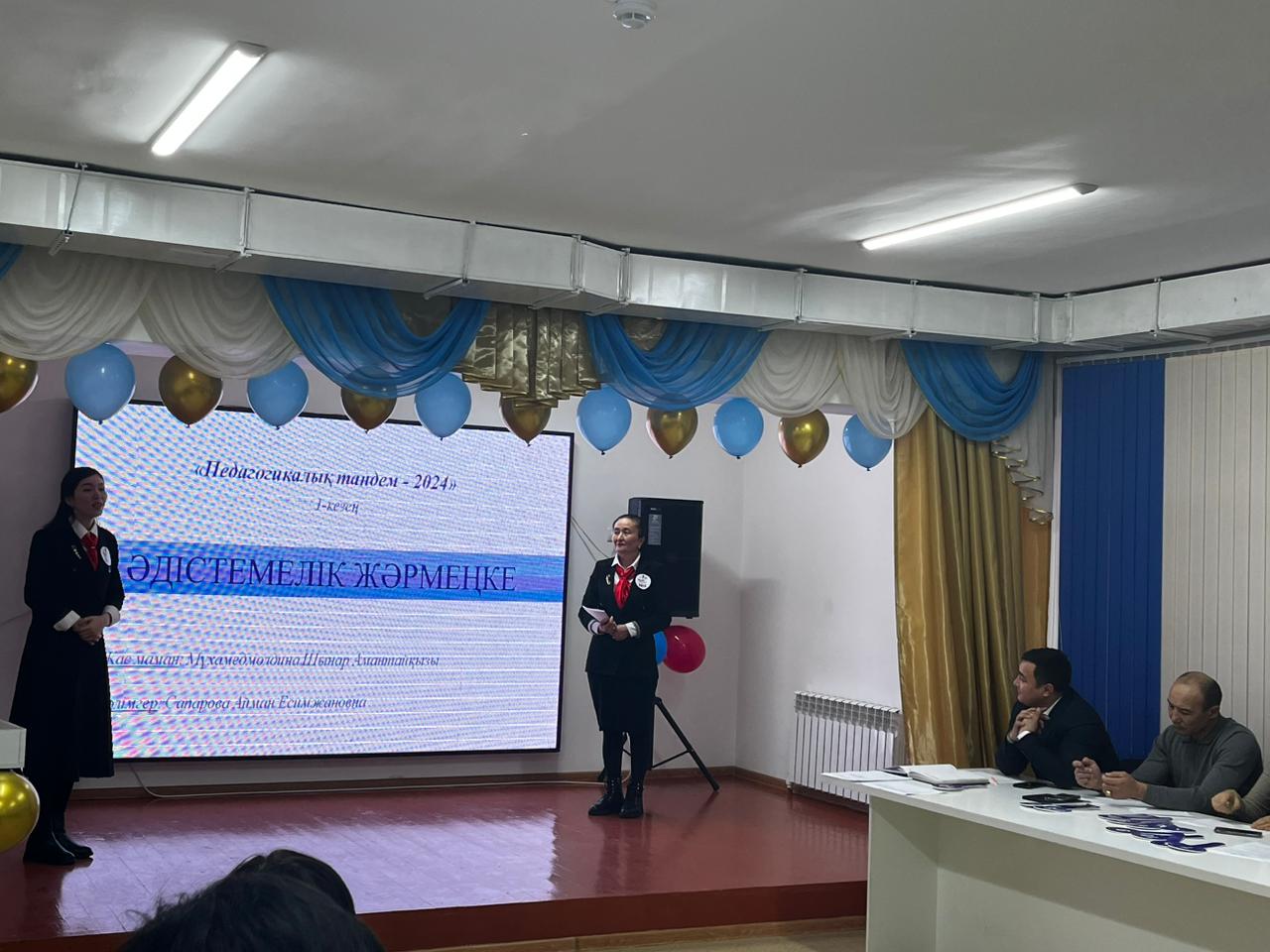 Бүгін мектебімізде «Педагогикалық тандем» атты әдістемелік жәрмеңке өтті. Жобаның мақсаты: мектептегі тәлімгерлік үдерісті жетілдіру, шығармашылықпен жұмыс жасайтын жас мамандарды анықтау және тәжірибе алмасу. Жас мамандарымыз тәлімгерлерімен бірге өз жобаларын ортаға салып, тәжірибелерімен бөлісті. Барлығы жоғары деңгейде өтті, қатысушыларға алғыс білдіреміз. Байқау қорытындысы бойынша 1 орынды иеленген математика пәні мұғалімі Мұхамедмолдина Шынар және тәлімгері Сапарова Айман Есімжанқызы аудандық кезеңге жолдама алды. Жас мамандарға алда талай асулы жол, бағындырар биік, жеңісті мәре бар. Барлығыңызға сәттілік тілейміз!