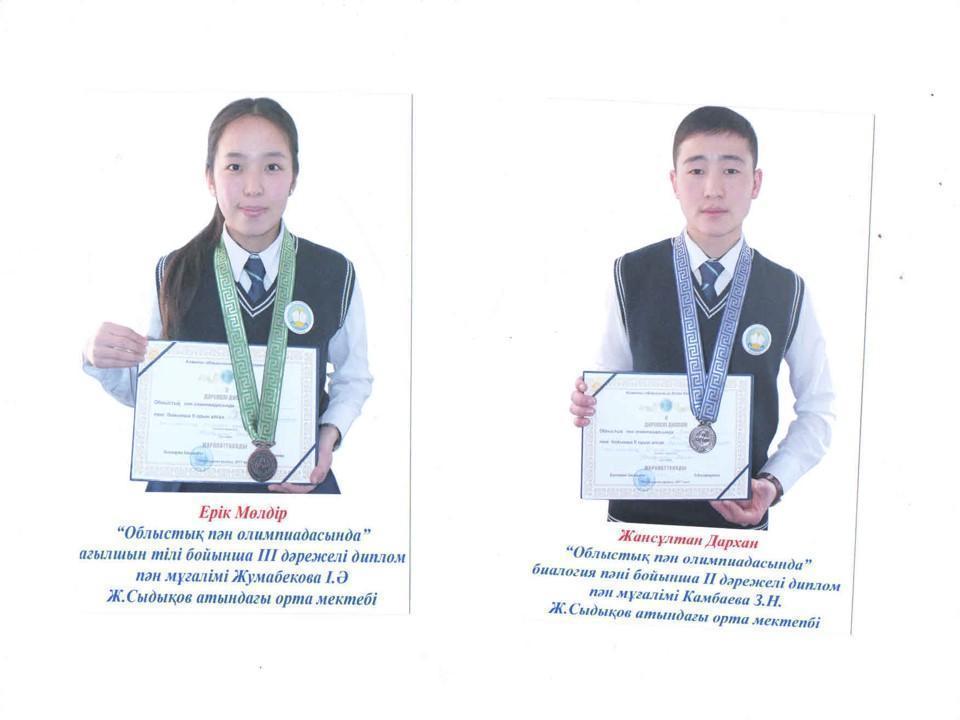 призеры олимпиад » "Жүрімбек Сыдықов атындағы орта мектебі, мектепке дейінгі шағын орталығымен" коммуналдық мемлекеттік мекемесі