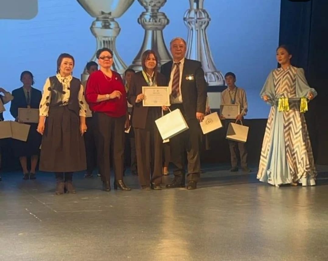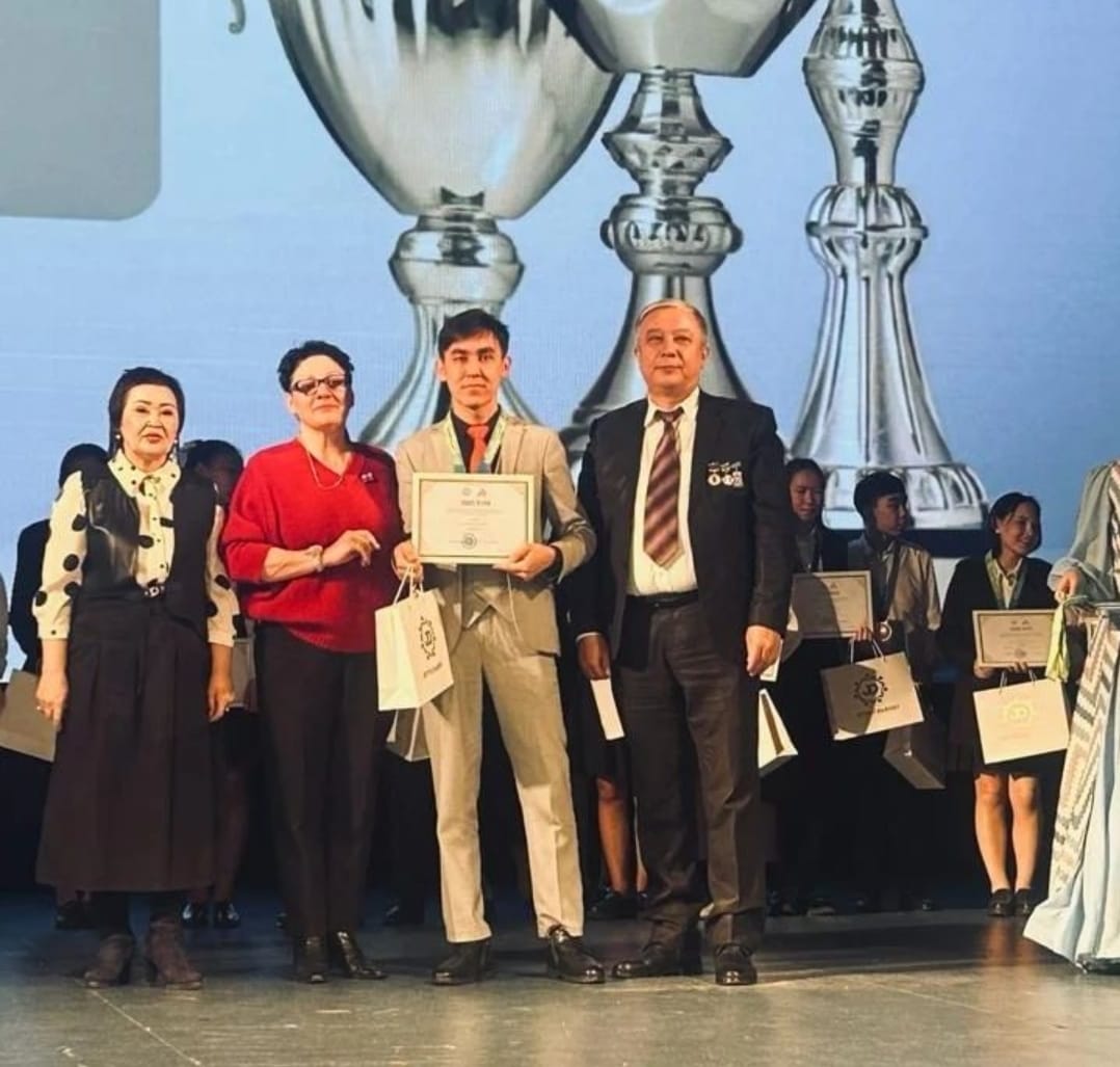 Ауыл мектептерінің 9-11 сынып оқушыларына арналған жалпы білім беретін пәндер бойынша республикалық олимпиаданың облыстық кезеңінің жүлделі орын иегерлері мектебіміздің 11-сынып оқушысы Құланбек Қыран және 10-сынып оқушысы Маратқызы Гульназды марапаттау сәті.