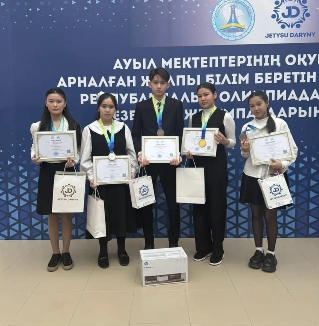 Ауыл мектептерінің оқушыларына арналған жалпы білім беретін пәндер бойынша республикалық олимпиаданың ІІІ (облыстық) кезеңінде мектебіміздің оқушылары: 9-сынып оқушысы Айтмұхамет Ұлнұр химия пәні бойынша ІІІ орын, жетекшісі: Әсетбек Құнайып, 10-сынып оқушысы Ермұрат Жәнібек биология пәні бойынша ІІІ орын, жетекшісі: Камбаева Зульфия Нуртаевна, 10-сынып оқушысы Мухаметалиқызы Айым құқық пәні бойынша І орын, жетекшісі: Корганбаева Айгерим Адилбаевна, 9-сынып оқушысы Мұрат Асыл ағылшын тілі пәні бойынша ІІ орын, жетекшісі: Нусипова Макпал Кенесбаевна, 11-сынып оқушысы Маратқызы Гүлназ орыс тілі мен әдебиеті пәні бойынша І орын иеленді, жетекшісі: Сейткожанова Назгуль Тилеугабыловна.Жүлдегерлерді шын жүректен құттықтаймыз! ! !