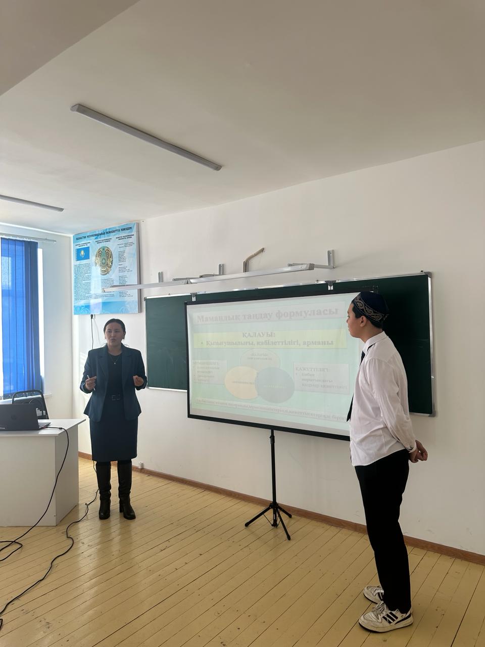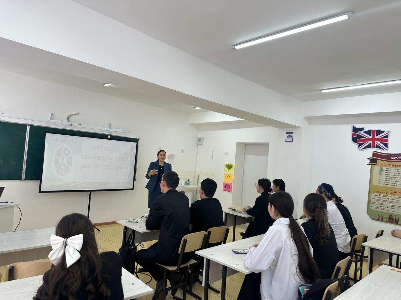Мектепішілік жоспарға сай 10 “А” сынып оқушыларымен Ахметова Айым Даулетовна “Өзіңді мамамдықтар әлемінде тап” атты ашық алаң өткізді. Оқушар ашық алаңға белсене қатысып, болашақта таңдайтын мамандықтарымен бөлісті. Әртүрлі сұрақтар , ойындар ойнатылды.