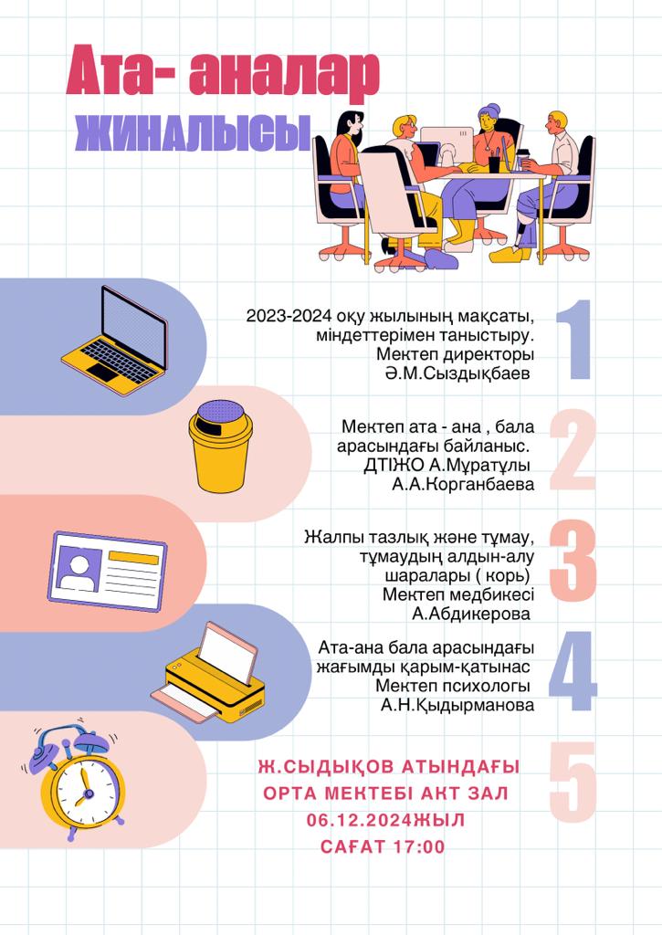 Жалпы ата-аналар жиналысы » "Жүрімбек Сыдықов атындағы орта мектебі, мектепке дейінгі шағын орталығымен" коммуналдық мемлекеттік мекемесі